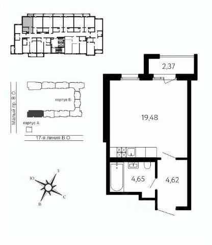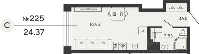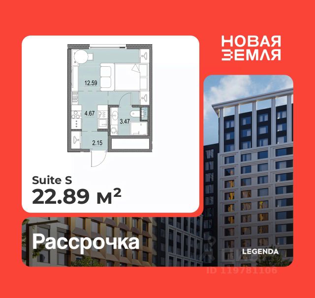 Просторная 1-комн. квартира-студия с предчистовой отделкой в ЖК "Новая Земля" на 10 этаже. Общая площадь: 25.22 кв.м., площадь гостиной 17.6 кв.м., из которых 5.88 кв.м. выделено под кухонную зону. Все окна выходят на одну сторону. В квартире один совмещенный санузел. Высота потолков 2.85 м. Дом монолитный, многоподъездный, высотой 17 этажей. Квартира находится в 1-й секции в корпусе 1.6. На этаже 5 квартир. В подъезде 1 пассажирский и 1 грузовой лифт. Окончание строительства - 4 квартал 2028 года. Оформление сделки по договору долевого участия. Новая Земля — проект LEGENDA в локации морской набережной Васильевского острова, где уже сегодня формируется многообещающее и перспективное место для жизни и инвестиций. Проект состоит из двух очередей, расположенных в непосредственной близости, но имеющих идеологически разный подход к проектированию и ассортиментному предложению. Первая очередь, где квартиры уже в продаже, наполнена компактными функциональными и эстетичными сьютами в комплектации TechnoBox, подходящими для активной аудитории, предпочитающей больше времени проводить в городе. Транспортная доступность обеспечена благодаря близости выезда на ЗСД, который позволяет быстро добраться как до центра города, так и до других районов Санкт-Петербурга. Архитектурная концепция проекта задает новый стандарт для этой локации. Дизайн фасадов, большие окна без импостов, современные инженерные решения — всё это создаёт атмосферу комфортного и эстетичного пространства, отвечающего самым высоким требованиям. В проекте представлена новая линейка планировочных решений, созданных по принципам отельного проектирования. Сьюты от LEGENDA — это уникальная работа с пространством, сочетающая сверхфункциональность и удобство, чистоту линий и стилистический минимализм. Планировочные решения в рамках первой очереди проекта будут поделены на несколько сегментов, отличающихся размерами, функциональной наполненностью и отвечающих потребностям различных жителей проекта.