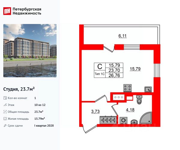 Цена со скидкой до 30% в прямой продаже от застройщика — только в этом месяце. На апартаменты действует беспроцентная рассрочка. Роскошные виды на Неву. Апартамент-студия в комплексе класса бизнес-лайт Зум на Неве на 10-м этаже. Общая площадь 18,65. Без отделки. Зум на Неве расположен в новом месте силы рядом с центром города на первой линии Октябрьской набережной в Невском районе, всего в 7 км от исторической части Санкт-Петербурга. Большой выбор эргономичных и максимально продуманных планировок позволит каждому найти вариант по душе. Панорамные виды на Неву, благоустроенные дворы, детская игровая комната, подземный паркинг, коммерческие зоны на первом этаже, это и многое другое делает Зум на Неве идеальным местом для жизни. Особенности: - Панорамные виды на Неву и город; - 10 мин. до Парка Строителей, 15 мин. до Лондон-молла, Ленты, Максидома, 15 мин. до метро "ул. Дыбенко", 12 мин. до КАД, 10 мин. до центра; - Единая архитектурная концепция. Сдержанные и монументальные фасады в неоклассическом стиле; - Парадный лобби для жильцов. Единый вход в комплекс с администратором, зоной ресепшн и охраной, зоной для бесконтактной доставки посылок и еды; - Подземный отапливаемый паркинг с доступом из парадной; - Доступно 3 варианта отделки на выбор: черновая, предчистовая (White Box) и чистовая; - Зоны отдыха для взрослых и детей, Wi-Fi-покрытие во дворе и в паркинге, зоны для питомцев, арт-объекты и много другое. В шаговой доступности вся необходимая инфраструктура от детских садов и школ до супермаркетов и салонов красоты; - Все происходящее контролируется видеокамерами, а покой внутренней территории и безопасность ваших детей гарантируется полным отсутствием транспорта во дворах в концепции "без машин".