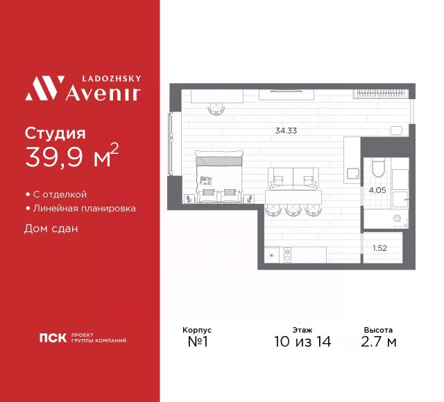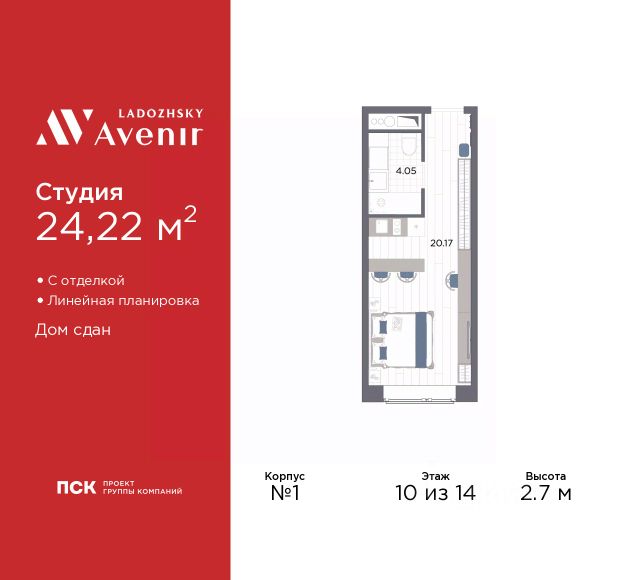 Продаётся студия в ЖК "Большая Охта" на 10 этаже. Общая площадь составляет 22.60 кв. м. Квартира с white box отделкой. Жилой комплекс "Большая Охта" располагается по адресу Санкт-Петербург, Красногвардейский. "ЛСР. Большая Охта" - проект бизнес-класса, в Красногвардейском районе между Якорной и Партизанской улицами, рядом с центром Петербурга. Престижный комплекс с удобной пешеходной и транспортной доступностью. Особенности квартиры высокие потолки и увеличенные окна. Горизонтальная разводка труб водоснабжения и отопления и вынесенные в холлы счетчики сохранят эстетичный дизайн комнат. Встроенные клапаны инфильтрации воздуха будут поддерживать чистоту и свежесть воздуха. Расположение: • 8 мин на авто до станции метро "Новочеркасская"; • 10 мин на авто до станции метро "Ладожская"; • 10 мин на авто до Таврического сада и исторического центра города; • 13 мин на авто до станции метро "Чернышевская"; • 25 мин на авто до КАД. Пространство внутри комплекса разделено на функциональные зоны: тематические, спортивные, уединенные. Все площадки окружают взрослые хвойные и лиственные деревья, подобранные с учетом роста, эстетики и сезонного цветения. Расширенная инфраструктура комплекса продумана до мелочей. Внутри квартала есть все необходимое для жизни с комфортом и удовольствием - детские сады и школы, магазины, площадки для спорта и отдыха, фитнес-залы, модные кофейни и общественные летние веранды. Преимущества: • Подземный паркинг и кладовые помещения; • Двор без машин; • Система "Умный дом" (в т.ч. управление домофоном со смартфона); • Пост охраны и консьерж; • Индивидуальный тепловой пункт; • Колясочные в каждой парадной; • Зарядка для электромобилей. Успейте приобрести квартиру на выгодных условиях! Чтобы узнать подробности, обращайтесь за консультацией по телефону.