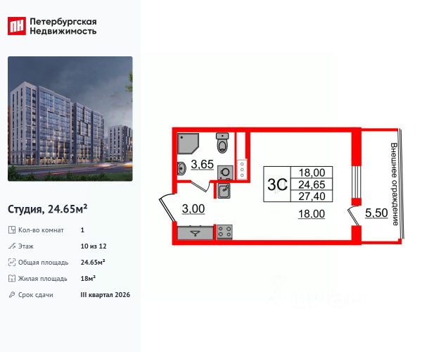 Продается уютная студия от застройщика в жилом комплексе "Бионика Заповедная" в динамичном Приморском районе. До метро можно добраться на транспорте всего за 11 минут. Удобная, классическая, функциональная европланировка, вместительная прихожая 3.06 м². Общая площадь студии - 24.38 м², жилая 18.1 м², высота потолка 2.77 м. Квартира продается с отделкой "Норд Лайн светлый плюс". Что особенного в ЖК "Бионика Заповедная"? • Оазис в городе 3 минуты пешком до Новоорловского заказника (140 ГА) • Захватывающие виды из окон на хвойный лесопарк • Всесезонный "Заповедный парк" во дворе площадью 23000 кв.м. • 5 единых входных групп с авторским дизайном и лаундж-зонами, сити-виллы на первых этажах с палисадниками и высотой потолков до 4 м • Места притяжения: фонтан "Бионика", спортивный кластер со скейт-парком, фотозоны с арт-объектами
