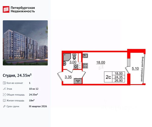 Уютная студия в современном, динамично развивающемся ЖК "Чистое небо", расположенном в Приморском районе, рядом Шуваловским карьером, Юнтоловским заказником, в 15 минутах езды от Финского залива.