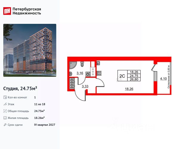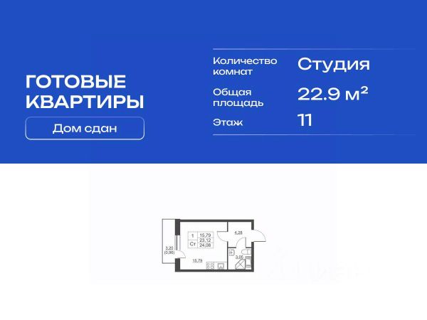 Строим кварталы для жизни с заботой о будущем. Предлагается квартира студия комфорт-класса 22,86 кв.м в корпусе 35.1 на 11 этаже, в ЖК "Новое Колпино"