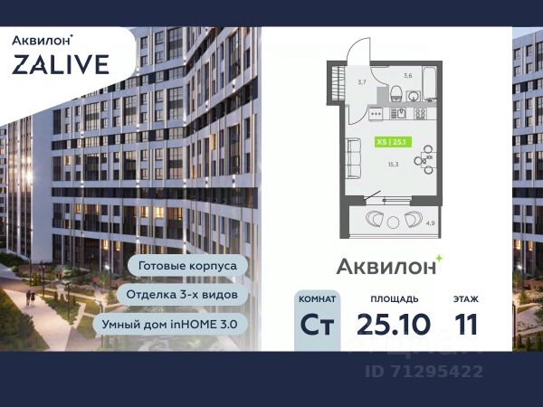 • ✓ В базе Циан 49 квартир-студий на 11 этаже рядом с метро Приморская