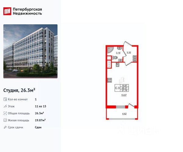 Цена со скидкой до 30% в прямой продаже от застройщика — только в этом месяце. При покупке апартаментов - паркинг за полцены. На все апартаменты действует беспроцентная рассрочка. Купите на распродаже! Покупка недвижимости в Zoom на Неве сейчас со скидкой до 30% позволит через 2 года получить доход до 6 300 000 руб. Роскошные виды на Неву. Апартамент-студия в комплексе класса бизнес-лайт Zoom на Неве на 11-м этаже. Общая площадь 18,52. Без отделки. Zoom на Неве расположен в новом месте силы рядом с центром города на первой линии Октябрьской набережной в Невском районе, всего в 7 км от исторической части Санкт-Петербурга. Большой выбор эргономичных и максимально продуманных планировок позволит каждому найти вариант по душе. Панорамные виды на Неву, благоустроенные дворы, детская игровая комната, подземный паркинг, коммерческие зоны на первом этаже, это и многое другое делает Zoom на Неве идеальным местом для жизни. Особенности: - Панорамные виды на Неву и город; - 10 мин. до Парка Строителей, 15 мин. до Лондон-молла, Ленты, Максидома, 15 мин. до метро "ул. Дыбенко", 12 мин. до КАД, 10 мин. до центра; - Единая архитектурная концепция. Сдержанные и монументальные фасады в неоклассическом стиле; - Парадный лобби для жильцов. Единый вход в комплекс с администратором, зоной ресепшн и охраной, зоной для бесконтактной доставки посылок и еды; - Подземный отапливаемый паркинг с доступом из парадной; - Доступно 3 варианта отделки на выбор: черновая, предчистовая (White Box) и чистовая; - Зоны отдыха для взрослых и детей, Wi-Fi-покрытие во дворе и в паркинге, зоны для питомцев, арт-объекты и много другое. В шаговой доступности вся необходимая инфраструктура от детских садов и школ до супермаркетов и салонов красоты; - Все происходящее контролируется видеокамерами, а покой внутренней территории и безопасность ваших детей гарантируется полным отсутствием транспорта во дворах в концепции "без машин".