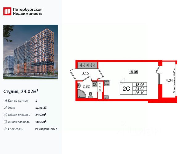Продается студия в ЖК "Октябрьская набережная" на 11 этаже. Общая площадь составляет 21.20 кв. м. Квартира с чистовой отделкой . Жилой комплекс "Октябрьская набережная" располагается по адресу Санкт-Петербург, Невский. Октябрьская набережная - жилой комплекс на берегу Невы, который отличается живописными видами и удобным местоположением: в окрестностях ЖК есть всё необходимое для комфортной жизни. Расположение: • 2 минуты пешком до набережной Невы; • 7 минут до станции метро "Улица Дыбенко" на автомобиле; • 8 минут до Большого Обуховского моста на автомобиле; • 15 минут до ТРК "Лондон Молл" на автомобиле. Будущие жильцы могут обустроить квартиру по своему вкусу: предлагается 2 вида отделки - уютный темный "Comfort Wood" и легкий светлый "Comfort Stone". Отделка выполняется из качественных материалов: прочный ламинат с фактурой светлого дерева или белого камня, светлые обои под покраску, лаконичные межкомнатные двери. Вход в парадные расположен на уровне земли и создает доступную среду для пожилых людей, людей с ограниченными возможностями и мам с колясками. На цокольном этаже находятся кладовые, которые позволят освободить пространство квартиры от лишних вещей. Во всех парадных расположены колясочные, рядом с ними - велопарковки. На территории комплекса есть всё для любителей активного отдыха: спортивные площадки, уличные тренажеры, велодорожки, места для игры в баскетбол и волейбол. Спортсмены могут насладиться живописными видами во время пробежки вдоль набережной. В зелёных и облагороженных дворах есть всё и для семей с детьми: тематические площадки, детский сад и даже школа. Комфортная среда для питомцев - еще одно преимущество "Октябрьской набережной": рядом с домами находится площадка для выгула собак. Для удобства автомобилистов на территории комплекса устроены крытые паркинги с безопасными охраняемыми выездами и большим количеством машино-мест. В пешей доступности расположены супермаркеты, кафе, парикмахерские, отделения банков. Преимущества: • Первая береговая линия • Двор без машин • Доступная среда • Развитая инфраструктура • Школа и детский сад во дворе • Близость к метро Успейте приобрести квартиру на выгодных условиях! Чтобы узнать подробности, обращайтесь за консультацией по телефону.
