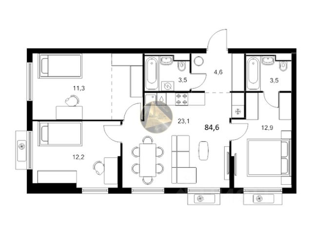 - ИНТЕРЕСНАЯ планировка - 3 изолированных просторных комнат ПРАВИЛЬНОЙ формы и возможность сделать ПЕРЕПЛАНИРОВКУ - дом НЕ является объектом культурного наследия,