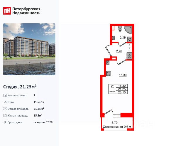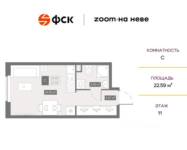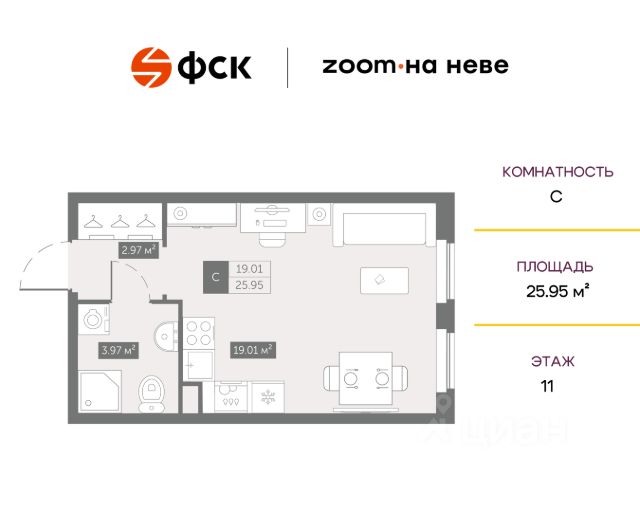Предлагаем Вашему вниманию апартаменты-студию в современном и стильном ЖК Апарт-комплекс ZOOM на Неве.