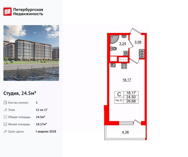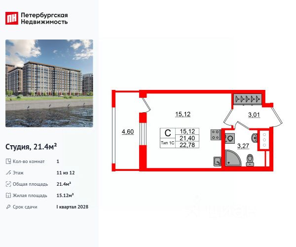 Цена со скидкой до 30% в прямой продаже от застройщика — только в этом месяце. На апартаменты действует беспроцентная рассрочка. Роскошные виды на Неву. Апартамент-студия в комплексе класса бизнес-лайт Zoom на Неве на 11-м этаже. Общая площадь 21,4. Без отделки. Zoom на Неве расположен в новом месте силы рядом с центром города на первой линии Октябрьской набережной в Невском районе, всего в 7 км от исторической части Санкт-Петербурга. Большой выбор эргономичных и максимально продуманных планировок позволит каждому найти вариант по душе. Панорамные виды на Неву, благоустроенные дворы, детская игровая комната, подземный паркинг, коммерческие зоны на первом этаже, это и многое другое делает Zoom на Неве идеальным местом для жизни. Особенности: - Панорамные виды на Неву и город; - 10 мин. до Парка Строителей, 15 мин. до Лондон-молла, Ленты, Максидома, 15 мин. до метро "ул. Дыбенко", 12 мин. до КАД, 10 мин. до центра; - Единая архитектурная концепция. Сдержанные и монументальные фасады в неоклассическом стиле; - Парадный лобби для жильцов. Единый вход в комплекс с администратором, зоной ресепшн и охраной, зоной для бесконтактной доставки посылок и еды; - Подземный отапливаемый паркинг с доступом из парадной; - Доступно 3 варианта отделки на выбор: черновая, предчистовая (White Box) и чистовая; - Зоны отдыха для взрослых и детей, Wi-Fi-покрытие во дворе и в паркинге, зоны для питомцев, арт-объекты и много другое. В шаговой доступности вся необходимая инфраструктура от детских садов и школ до супермаркетов и салонов красоты; - Все происходящее контролируется видеокамерами, а покой внутренней территории и безопасность ваших детей гарантируется полным отсутствием транспорта во дворах в концепции "без машин".