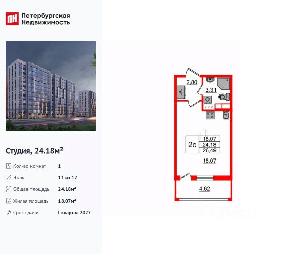 Цена со специальной скидкой в прямой продаже от застройщика — только в этом месяце. Апартамент-студия в комплексе класса бизнес-лайт Zoom Чёрная Речка на 11-м этаже. Общая площадь 25,39. Без отделки. Zoom Черная речка это новый комплекс класса бизнес-лайт от крупного федерального застройщика ФСК. Zoom Черная речка расположен в престижном Приморском районе непосредственно на берегу Черной речки. В нем есть все необходимое для жителей разных возрастов и интересов от отапливаемого подземного паркинга и круглосуточного видеонаблюдения до коворкинга на открытом воздухе, интерактивных детских площадок и зон отдыха. Собственная набережная будет оборудована деревянными настилами и скамейками, благодаря чему вы сможете с комфортом проводить время у воды. Лобби на первом этаже современное и стильное пространство, где вы можете выпить кофе, подождать такси или поработать с ноутбуком. В отдельных лотах предусмотрено все для оборудования камина. Новый уровень уюта в вашем доме. Приобретение возможно в том числе с помощью ипотеки и рассрочки.