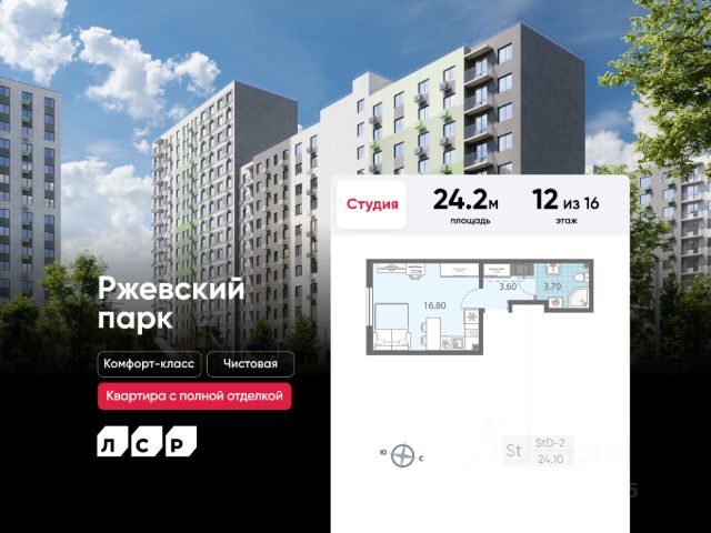 Продается студия в ЖК "ЛСР. Ржевский парк" на 12 этаже. Общая площадь составляет 24.20 кв. м. Квартира с чистовой отделкой. Жилой комплекс "ЛСР. Ржевский парк" располагается по адресу Ленинградская область, Всеволожский район, Ковалёво пос.. ЛСР. Ржевский парк - современный масштабный эко-проект: с пешеходными бульварами и велодорожками, площадками для спорта и отдыха в 30 минутах от центра Санкт-Петербурга. Расположение комплекса: • 13 минут до ж/д станции "Ковалёво"; • 30 минут до центра Санкт-Петербурга на автомобиле; • 26 минут до Финляндского вокзала. Квартира сдается с готовой отделкой из современных экологичных материалов: ламинированные межкомнатные двери, двухкамерные стеклопакеты, флизелиновые обои, качественный матовый ламинат с фактурой дерева, керамическая плитка. Между домами будут устроены бульвары, пешеходные и велодорожки, игровые и спортивные площадки, зоны отдыха для детей и взрослых. На первых этажах находятся колясочные, магазины, кафе и сервисные службы. На территории построят 4 школы, 9 детских садов, 2 спортивных комплекса, поликлинику, станцию скорой помощи и пожарное депо. Первый детский сад откроется уже в 2025 году. Преимущества комплекса: • Рядом лесопарк и Ладожское озеро • Живописные виды из окон • Безбарьерная среда • Развитая социальная инфраструктура • Умный дом • Двор без машин Успейте приобрести квартиру на выгодных условиях! Чтобы узнать подробности, обращайтесь за консультацией по телефону.