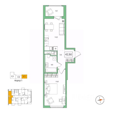 Цена действует при 100% оплате и на определенные ипотечные программы. Подробности — в отделе продаж по телефону. Продается студия в ЖК "ЛСР. Ржевский парк" на 12 этаже. Общая площадь составляет 24.20 кв. м. Квартира с чистовой отделкой. Жилой комплекс "ЛСР. Ржевский парк" располагается по адресу Ленинградская область, Всеволожский район, Ковалёво пос.. ЛСР. Ржевский парк - современный масштабный эко-проект: с пешеходными бульварами и велодорожками, площадками для спорта и отдыха в 30 минутах от центра Санкт-Петербурга. Расположение комплекса: • 13 минут до ж/д станции "Ковалёво"; • 30 минут до центра Санкт-Петербурга на автомобиле; • 26 минут до Финляндского вокзала. Квартира сдается с готовой отделкой из современных экологичных материалов: ламинированные межкомнатные двери, двухкамерные стеклопакеты, флизелиновые обои, качественный матовый ламинат с фактурой дерева, керамическая плитка. Между домами будут устроены бульвары, пешеходные и велодорожки, игровые и спортивные площадки, зоны отдыха для детей и взрослых. На первых этажах находятся колясочные, магазины, кафе и сервисные службы. На территории построят 4 школы, 9 детских садов, 2 спортивных комплекса, поликлинику, станцию скорой помощи и пожарное депо. Первый детский сад откроется уже в 2025 году. Преимущества комплекса: • Рядом лесопарк и Ладожское озеро • Живописные виды из окон • Безбарьерная среда • Развитая социальная инфраструктура • Умный дом • Двор без машин Успейте приобрести квартиру на выгодных условиях! Чтобы узнать подробности, обращайтесь за консультацией по телефону.