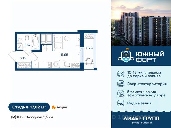 Цена действует при 100% оплате и на определенные ипотечные программы. Подробности — в отделе продаж по телефону. Продается студия в ЖК "Морская миля" на 12 этаже. Общая площадь составляет 25.97 кв. м. Квартира с чистовой отделкой. Жилой комплекс "Морская миля" располагается по адресу Санкт-Петербург, Красносельский. Морская миля - жилой комплекс в Красносельском районе Санкт-Петербурга. Расположение комплекса - его главное преимущество: близость к таким историческим памятникам и местам, как Петергоф, Павловский дворец и Царское село позволяет в любой момент насладиться красотами культурной столицы России. Расположение: - всего 350 м до новой станции метро "Юго-Западная"; - 20 минут до Петергофа на автомобиле; - 20 минут до аэропорта "Пулково" на автомобиле; - 30 минут до Царского села на автомобиле. Между корпусами расположены спортивные и детские площадки, пешеходный бульвар. В квартире выполнена полная отделка "Comfort Wood" из качественных материалов: прочный ламинат цвета благородного дуба, фактурные белые обои, керамическая плитка в ванной. Вход в парадные расположен на уровне земли и создает доступную среду для пожилых людей, людей с ограниченными возможностями и мам с колясками. На этажах и в подвале есть кладовые, которые позволят освободить пространство квартиры от лишних вещей. Первые этажи отведены под магазины и колясочные. На территории комплекса находятся наземные паркинги, гостевые парковки, детский сад, школа. В пешей доступности расположены магазины, кафе, аптеки и прочие удобства, необходимые для спокойной и комфортной жизни. Во дворах устроены пешеходные зоны, дворы озеленены и благоустроены: имеются тенистые аллеи, уютные зоны для отдыха детей и взрослых, а также стильные плей-хабы. Преимущества: - Станция метро в пешей доступности - Пешеходный бульвар - Близость к памятникам культуры и архитектуры - Школа и детский сад во дворе - Доступная среда Успейте приобрести квартиру на выгодных условиях! Чтобы узнать подробности, обращайтесь за консультацией по телефону.