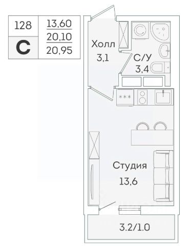 Продаётся студия в сданном доме (Графская, 6к3 (Корпус 2)), срок сдачи: I-кв. 2024, общей площадью 20.1 кв.м., на 12 этаже. Расположение, транспортная доступность