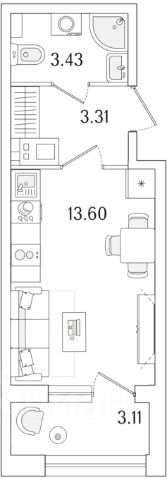 1-комн. квартира-студия с отделкой в ЖК "RESPECT" на 12 этаже. Общая площадь: 31.08 кв.м., площадь гостиной 22.5 кв.м., из которых 5 кв.м. выделено под кухонную зону. Все окна выходят на одну сторону. В квартире одна лоджия, один совмещенный санузел. Высота потолков 2.7 м. Дом монолитный, многоподъездный, переменной этажности, от 8 до 13 этажей. Квартира находится в 1-й секции высотой 13 этажей в корпусе 3.3. На этаже 6 квартир. В подъезде 1 пассажирский и 1 грузовой лифт. Начало строительства - 3 квартал 2025 года. Окончание строительства - 4 квартал 2027 года. Оформление сделки по договору долевого участия. В шаговой доступности от жилого комплекса имеются станции метро (расстояние по прямой): "Лесная" (800 м), "Площадь Мужества" (1.4 км), "Выборгская" (1.9 км), также недалеко от этого корпуса расположены станции метро: "Академическая", "Политехническая". Квартал строится на Полюстровском пр, 87, в одной из самых востребованных локаций Петербурга. В 10 минутах пешком - метро "Лесная" и в 10 минутах на транспорте - Петроградская сторона. Высота домов от 7 до 13 этажей. На территории Respect строится школа на 1125 учащихся и детский сад на 240 мест. Запроектированы собственная газовая котельная, закрытая территория, дворы без машин и подземные паркинги с лифтами. Вентилируемые фасады облицованы клинкерным кирпичом. Дома из этого материала служат веками, являясь гордостью хозяев. Дизайн парадных зон и входных групп - сочетание лаконичности отделки и декоративных элементов с текстурами из натурального камня и дерева с приглушенной подсветкой теплым светом. Во входных группах расположены гостевые зоны с мягкой мебелью. Вся территория квартала будет связана единой концепцией благоустройства, разработанной ландшафтным бюро L.BURO. В основе - идея создания увлекательного ландшафтного пространства для насыщенной жизни, включающего в себя пейзажные зоны, современные архитектурные композиции, открытые террасы на стилобатах с зонами отдыха и парклетами, спортивными площадками. Это пространство для людей всех возрастов и различных увлечений. На эксплуатируемой кровле на уровне первого этажа в домах 1 и 4 будут обустроены общественные видовые террасы. В квартале запроектированы внутренние закрытые территории дворов домов без доступа автомобилей и безбарьерная среда для велосипедистов и колясок. Предусмотрены IP-домофония с функцией дистанционного открывания калиток и парадных, а также дистанционный сбор показаний счетчиков и мобильное приложение для жителей. Для безопасности жителей квартала - круглосуточное видеонаблюдение и служба охраны. В каждой квартире предусмотрены внешние корзины для кондиционеров. #ZmBczg