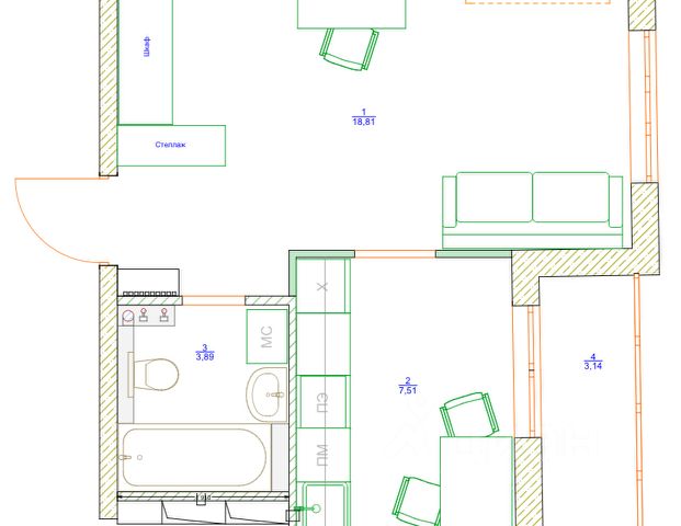 отдeлка по дизайнеpскому проекту застройщика.