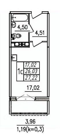Продается квартира 305, по адресу г. Санкт-Петербург, поселок Шушары, Школьная улица, стр.1, корпус ЖК Монография в Монография на 12 этаже, с площадью 25.3 м2.