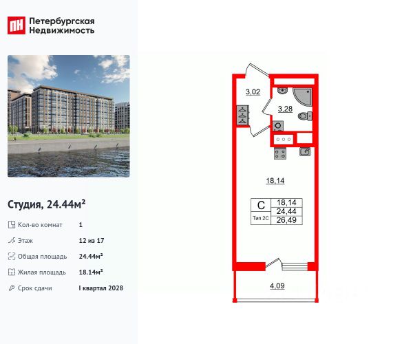 Цена со скидкой до 30% в прямой продаже от застройщика — только в этом месяце. При покупке апартаментов - паркинг за полцены. На все апартаменты действует беспроцентная рассрочка. Купите на распродаже! Покупка недвижимости в Zoom на Неве сейчас со скидкой до 30% позволит через 2 года получить доход до 6 300 000 руб. Роскошные виды на Неву. Апартамент-студия в комплексе класса бизнес-лайт Zoom на Неве на 12-м этаже. Общая площадь 18,52. Без отделки. Zoom на Неве расположен в новом месте силы рядом с центром города на первой линии Октябрьской набережной в Невском районе, всего в 7 км от исторической части Санкт-Петербурга. Большой выбор эргономичных и максимально продуманных планировок позволит каждому найти вариант по душе. Панорамные виды на Неву, благоустроенные дворы, детская игровая комната, подземный паркинг, коммерческие зоны на первом этаже, это и многое другое делает Zoom на Неве идеальным местом для жизни. Особенности: - Панорамные виды на Неву и город; - 10 мин. до Парка Строителей, 15 мин. до Лондон-молла, Ленты, Максидома, 15 мин. до метро "ул. Дыбенко", 12 мин. до КАД, 10 мин. до центра; - Единая архитектурная концепция. Сдержанные и монументальные фасады в неоклассическом стиле; - Парадный лобби для жильцов. Единый вход в комплекс с администратором, зоной ресепшн и охраной, зоной для бесконтактной доставки посылок и еды; - Подземный отапливаемый паркинг с доступом из парадной; - Доступно 3 варианта отделки на выбор: черновая, предчистовая (White Box) и чистовая; - Зоны отдыха для взрослых и детей, Wi-Fi-покрытие во дворе и в паркинге, зоны для питомцев, арт-объекты и много другое. В шаговой доступности вся необходимая инфраструктура от детских садов и школ до супермаркетов и салонов красоты; - Все происходящее контролируется видеокамерами, а покой внутренней территории и безопасность ваших детей гарантируется полным отсутствием транспорта во дворах в концепции "без машин".