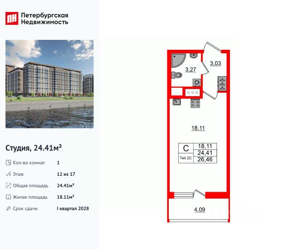 Продаем отличную студию в ЖК "Пульс на набережной",