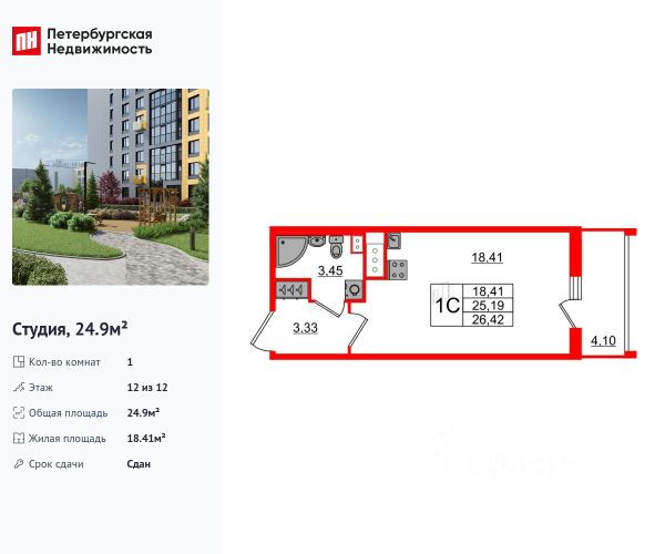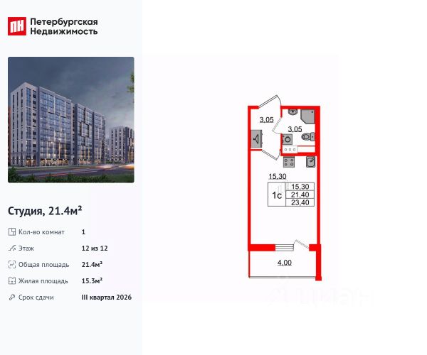 Продается уютная студия от застройщика в жилом комплексе "Бионика Заповедная" в динамичном Приморском районе. До метро можно добраться на транспорте всего за 11 минут. Удобная, классическая, функциональная европланировка, просторная прихожая 3.23 м². Общая площадь студии - 21.35 м², жилая 15 м², высота потолка 3 м. Квартира продается с отделкой "Норд Лайн светлый плюс". Что особенного в ЖК "Бионика Заповедная"? • Оазис в городе 3 минуты пешком до Новоорловского заказника (140 ГА) • Захватывающие виды из окон на хвойный лесопарк • Всесезонный "Заповедный парк" во дворе площадью 23000 кв.м. • 5 единых входных групп с авторским дизайном и лаундж-зонами, сити-виллы на первых этажах с палисадниками и высотой потолков до 4 м • Места притяжения: фонтан "Бионика", спортивный кластер со скейт-парком, фотозоны с арт-объектами