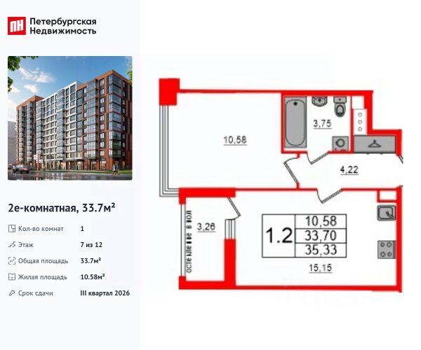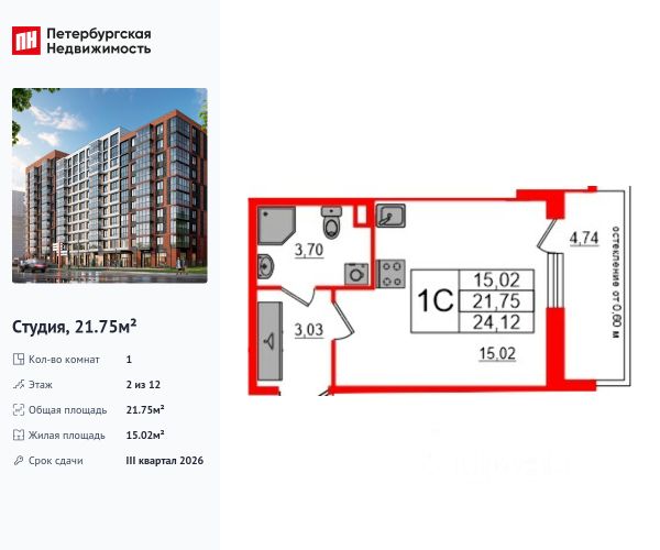 Цена действует при 100% оплате и на определенные ипотечные программы. Подробности — в отделе продаж по телефону. Продается студия в ЖК "Морская миля" на 12 этаже. Общая площадь составляет 22.67 кв. м. Квартира с чистовой отделкой. Жилой комплекс "Морская миля" располагается по адресу Санкт-Петербург, Красносельский. Морская миля - жилой комплекс в Красносельском районе Санкт-Петербурга. Расположение комплекса - его главное преимущество: близость к таким историческим памятникам и местам, как Петергоф, Павловский дворец и Царское село позволяет в любой момент насладиться красотами культурной столицы России. Расположение: - всего 350 м до новой станции метро "Юго-Западная"; - 20 минут до Петергофа на автомобиле; - 20 минут до аэропорта "Пулково" на автомобиле; - 30 минут до Царского села на автомобиле. Между корпусами расположены спортивные и детские площадки, пешеходный бульвар. В квартире выполнена полная отделка "Comfort Wood" из качественных материалов: прочный ламинат цвета благородного дуба, фактурные белые обои, керамическая плитка в ванной. Вход в парадные расположен на уровне земли и создает доступную среду для пожилых людей, людей с ограниченными возможностями и мам с колясками. На этажах и в подвале есть кладовые, которые позволят освободить пространство квартиры от лишних вещей. Первые этажи отведены под магазины и колясочные. На территории комплекса находятся наземные паркинги, гостевые парковки, детский сад, школа. В пешей доступности расположены магазины, кафе, аптеки и прочие удобства, необходимые для спокойной и комфортной жизни. Во дворах устроены пешеходные зоны, дворы озеленены и благоустроены: имеются тенистые аллеи, уютные зоны для отдыха детей и взрослых, а также стильные плей-хабы. Преимущества: - Станция метро в пешей доступности - Пешеходный бульвар - Близость к памятникам культуры и архитектуры - Школа и детский сад во дворе - Доступная среда Успейте приобрести квартиру на выгодных условиях! Чтобы узнать подробности, обращайтесь за консультацией по телефону.