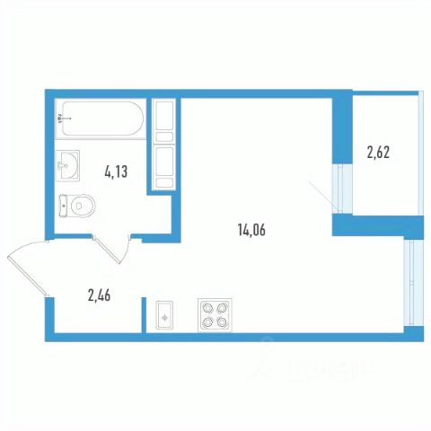 Продается квартира 305, по адресу г. Санкт-Петербург, поселок Шушары, Школьная улица, стр.1, корпус ЖК Монография в Монография на 12 этаже, с площадью 25.3 м2.