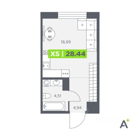 Высота потолков до 2,85 м