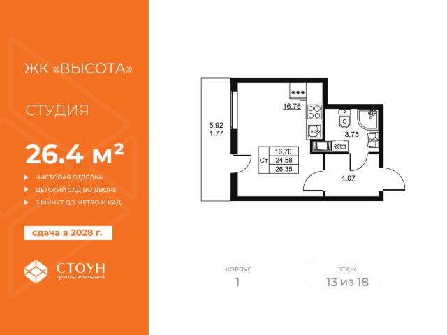 Продаётся квартира-студия в жилом комплексе ЦДС "Новые Горизонты", участок 7, Корпус 5 ДОМ СДАН и заселен! При покупке квартиры без участия агентов дарим сертификат новосела в магазин ХОФФ на сумму 50 000 рублей. Им можно оплатить не более 15% от суммы покупки. Квартира с чистовой отделкой: на полу ламинат, на стенах обои под покраску, установлены межкомнатные двери, в санузлах везде положена плитка, установлена вся сантехника! В непосредственной близости от нового квартала уже построены детский сад и школа для 1383 учеников. Прямая продажа от застройщика Группы ЦДС! Номер в базе ЦДС: 78931