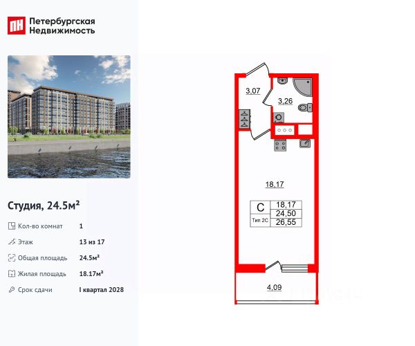 Продается апартамент-студия на 13-м этаже в сданном Апарт-комплексе бизнес-класса "GloraX Заневский". Ключи сразу! Общая площадь лота составляет 29,77 кв. м, из которых 24,84 кв. м отведено под жилую. Номер апартамента - 1 306. Преимущества: - Полная чистовая отделка - Возможность покупки меблировка и техника - Вход по ключ-карте - Прачечная на 1 этаже - Возможность дозаказа отельного сервиса - Программы доходности - Летний бар и променад - Воркаут площадка - Pet-friendly Апартаменты "GloraX Заневский" - проект бизнес-класса с развитой инфраструктурой, удовлетворяющей все потребности самых взыскательных гостей. Располагается в одном из наиболее перспективных, районов Петербурга в 2х минутах от метро "Ладожская" и в 10 минутах от Невского проспекта. В "GloraX Заневский" есть все, что необходимо для комфортной жизни, работы и отдыха. Инфраструктура, покрывающая все потребности и ожидания собственников и арендаторов. В радиусе 150 метров находятся супермаркеты с возможностью доставки продуктов прямо до дверей апартаментов. На 1000 кв. м. общественных пространств расположится уютный лобби-бар, ресторан мировой кухни на 80 человек и оборудованные коворкинги. В апартаментах "GloraX Заневский" выполнена современная отделка с использованием высококачественных экологичных материалов. В проекте предусмотрен подземный отапливаемый паркинг на 100 мест, куда можно спуститься на лифте прямо от дверей апартаментов. Узнайте подробности в Отделе продаж.