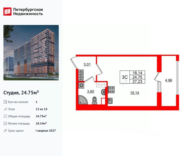 Продается уютная студия от застройщика в жилом комплексе "Город звезд" в новом городе на правом берегу Невы. До метро можно добраться на транспорте всего за 13 минут. Удобная, классическая, функциональная европланировка, вместительная прихожая 3 м². Общая площадь студии - 24.4 м², жилая 18.33 м², высота потолка 2.77 м. Квартира продается с отделкой "NORD LINE WHITE". Что особенного в ЖК "Город звезд"? • Инновационный Лицей Setl с оригинальной архитектурной концепцией и уникальной образовательной средой • Невский лесопарк под окнами - всегда свежий воздух и полноценный отдых на природе • Четыре тематические площади отдыха с разнообразным благоустройством • Аллея Звёзд - променад протяженностью 5 км с ландшафтным озеленением, зонами отдыха и велодорожкой • Выход на набережную реки Утки, где можно порыбачить или взять напрокат лодку • Единая входная группа с ресепшен и подземный паркинг