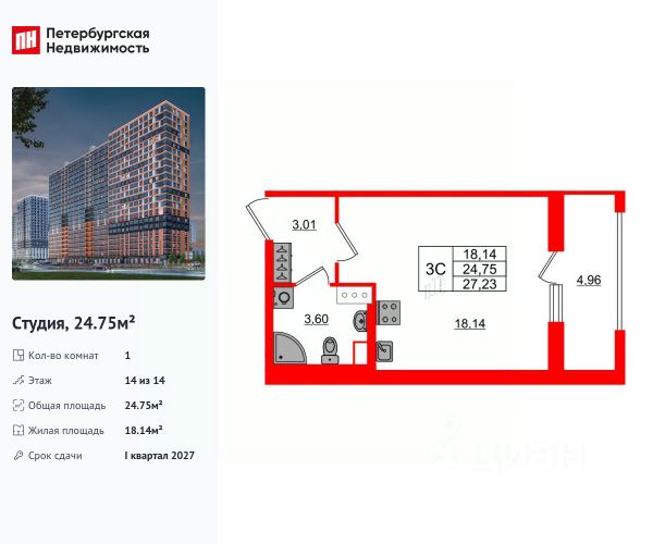 Продаётся квартира-студия площадью 23,9 кв.м на 14 этаже 15 этажного дома (Корпус 1, Секция 2) проекта ПИК Янинский лес. Светлый просторный подъезд на уровне земли, функциональная планировка, большие окна, c отделкой. Жилой квартал "Янинский лес" возводится в районе Янино-1 Ленинградской области. Автобусная остановка находится в 3 минутах пешком. Проект расположен вплотную к восточной границе Санкт-Петербурга - в 4 минутах от КАД. До метро "Ладожская" - 23 минуты на общественном транспорте. До исторического центра города можно доехать за 25 минут на автомобиле. "Янинский лес" - масштабный проект из 32 жилых корпусов, где будет всё для комфортной жизни. Здесь предусмотрены надземные паркинги, откроются детские сады, школа и поликлиника. Кроме этого, появятся места, в которых можно проводить свободное время: ледовая арена и торговый центр площадью больше 3000 м². Жилой район строится по всем правилам ПИК-Стандарта: в зелёных дворах-парках появятся современные детские и спортивные площадки, пешеходный бульвар и другие места для отдыха. На первых этажах разместятся магазины, кафе и другие сервисы. Во дворах не будет автомобилей, а для гостей предусмотрены парковочные места. Проект окружают лесные массивы. В пешей доступности находится Ржевский лесопарк: летом там можно гулять и собирать грибы, а зимой кататься на лыжах. Также рядом расположен памятник природы Колтушские высоты - парк с обустроенными экотропами и веломаршрутом. А главное место притяжения местных жителей - озеро с обустроенным местом для пикников. Артикул 1048987 (Застройщик ООО "СПЕЦИАЛИЗИРОВАННЫЙ ЗАСТРОЙЩИК"ЭКСТРАГРАД") [cn_sbp_1828270]