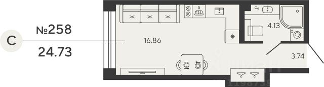 Продается 1-комн. квартира-студия с предчистовой отделкой в ЖК "Новая Земля" на 14 этаже. Общая площадь: 19.1 кв.м., площадь гостиной 14.18 кв.м., из которых 5.09 кв.м. выделено под кухонную зону. Все окна выходят на одну сторону. В квартире один совмещенный санузел. Высота потолков 2.85 м. Квартира находится в корпусе 1.8. Дом монолитный, одноподъездный, высотой 15 этажей. На этаже 8 квартир. В подъезде 2 пассажирских и 1 грузовой лифт. Окончание строительства - 4 квартал 2028 года. Оформление сделки по договору долевого участия. Новая Земля — проект LEGENDA в локации морской набережной Васильевского острова, где уже сегодня формируется многообещающее и перспективное место для жизни и инвестиций. Проект состоит из двух очередей, расположенных в непосредственной близости, но имеющих идеологически разный подход к проектированию и ассортиментному предложению. Первая очередь, где квартиры уже в продаже, наполнена компактными функциональными и эстетичными сьютами в комплектации TechnoBox, подходящими для активной аудитории, предпочитающей больше времени проводить в городе. Транспортная доступность обеспечена благодаря близости выезда на ЗСД, который позволяет быстро добраться как до центра города, так и до других районов Санкт-Петербурга. Архитектурная концепция проекта задает новый стандарт для этой локации. Дизайн фасадов, большие окна без импостов, современные инженерные решения — всё это создаёт атмосферу комфортного и эстетичного пространства, отвечающего самым высоким требованиям. В проекте представлена новая линейка планировочных решений, созданных по принципам отельного проектирования. Сьюты от LEGENDA — это уникальная работа с пространством, сочетающая сверхфункциональность и удобство, чистоту линий и стилистический минимализм. Планировочные решения в рамках первой очереди проекта будут поделены на несколько сегментов, отличающихся размерами, функциональной наполненностью и отвечающих потребностям различных жителей проекта.
