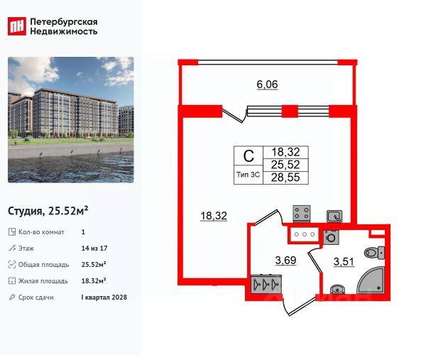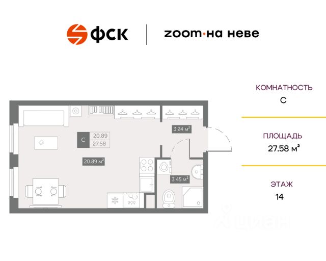Цена со скидкой до 30% в прямой продаже от застройщика — только в этом месяце. На апартаменты действует беспроцентная рассрочка. Роскошные виды на Неву. Апартамент-студия в комплексе класса бизнес-лайт Зум на Неве на 14-м этаже. Общая площадь 18,65. Без отделки. Зум на Неве расположен в новом месте силы рядом с центром города на первой линии Октябрьской набережной в Невском районе, всего в 7 км от исторической части Санкт-Петербурга. Большой выбор эргономичных и максимально продуманных планировок позволит каждому найти вариант по душе. Панорамные виды на Неву, благоустроенные дворы, детская игровая комната, подземный паркинг, коммерческие зоны на первом этаже, это и многое другое делает Зум на Неве идеальным местом для жизни. Особенности: - Панорамные виды на Неву и город; - 10 мин. до Парка Строителей, 15 мин. до Лондон-молла, Ленты, Максидома, 15 мин. до метро "ул. Дыбенко", 12 мин. до КАД, 10 мин. до центра; - Единая архитектурная концепция. Сдержанные и монументальные фасады в неоклассическом стиле; - Парадный лобби для жильцов. Единый вход в комплекс с администратором, зоной ресепшн и охраной, зоной для бесконтактной доставки посылок и еды; - Подземный отапливаемый паркинг с доступом из парадной; - Доступно 3 варианта отделки на выбор: черновая, предчистовая (White Box) и чистовая; - Зоны отдыха для взрослых и детей, Wi-Fi-покрытие во дворе и в паркинге, зоны для питомцев, арт-объекты и много другое. В шаговой доступности вся необходимая инфраструктура от детских садов и школ до супермаркетов и салонов красоты; - Все происходящее контролируется видеокамерами, а покой внутренней территории и безопасность ваших детей гарантируется полным отсутствием транспорта во дворах в концепции "без машин".