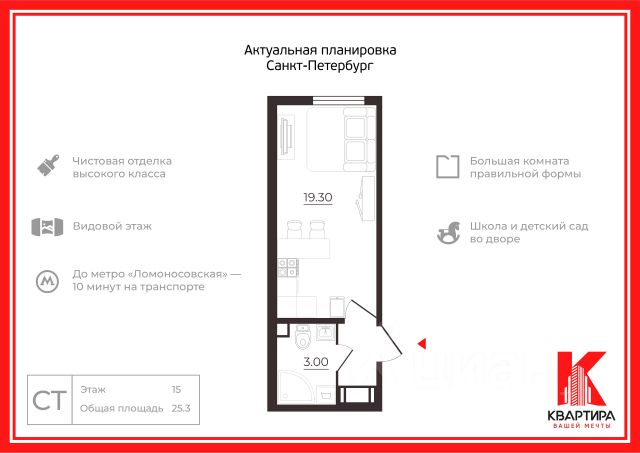 Цена со скидкой до 30% в прямой продаже от застройщика — только в этом месяце. При покупке апартаментов - паркинг за полцены. На все апартаменты действует беспроцентная рассрочка. Купите на распродаже! Покупка недвижимости в Zoom на Неве сейчас со скидкой до 30% позволит через 2 года получить доход до 6 300 000 руб. Роскошные виды на Неву. Апартамент-студия в комплексе класса бизнес-лайт Zoom на Неве на 15-м этаже. Общая площадь 22,59. Предчистовая отделка. Zoom на Неве расположен в новом месте силы рядом с центром города на первой линии Октябрьской набережной в Невском районе, всего в 7 км от исторической части Санкт-Петербурга. Большой выбор эргономичных и максимально продуманных планировок позволит каждому найти вариант по душе. Панорамные виды на Неву, благоустроенные дворы, детская игровая комната, подземный паркинг, коммерческие зоны на первом этаже, это и многое другое делает Zoom на Неве идеальным местом для жизни. Особенности: - Панорамные виды на Неву и город; - 10 мин. до Парка Строителей, 15 мин. до Лондон-молла, Ленты, Максидома, 15 мин. до метро "ул. Дыбенко", 12 мин. до КАД, 10 мин. до центра; - Единая архитектурная концепция. Сдержанные и монументальные фасады в неоклассическом стиле; - Парадный лобби для жильцов. Единый вход в комплекс с администратором, зоной ресепшн и охраной, зоной для бесконтактной доставки посылок и еды; - Подземный отапливаемый паркинг с доступом из парадной; - Доступно 3 варианта отделки на выбор: черновая, предчистовая (White Box) и чистовая; - Зоны отдыха для взрослых и детей, Wi-Fi-покрытие во дворе и в паркинге, зоны для питомцев, арт-объекты и много другое. В шаговой доступности вся необходимая инфраструктура от детских садов и школ до супермаркетов и салонов красоты; - Все происходящее контролируется видеокамерами, а покой внутренней территории и безопасность ваших детей гарантируется полным отсутствием транспорта во дворах в концепции "без машин".