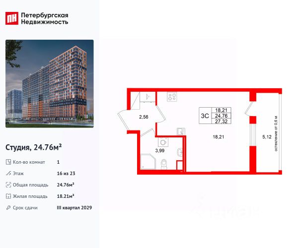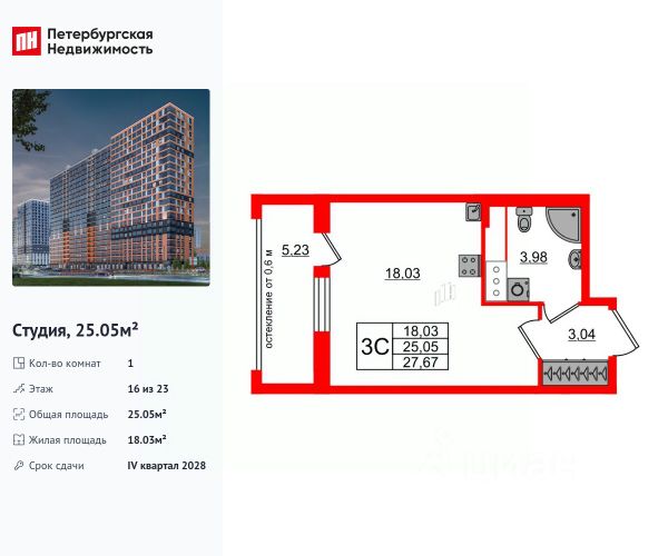 Продается студия в ЖК "Октябрьская набережная" на 16 этаже. Общая площадь составляет 21.40 кв. м. Квартира с чистовой отделкой . Жилой комплекс "Октябрьская набережная" располагается по адресу Санкт-Петербург, Невский. Октябрьская набережная - жилой комплекс на берегу Невы, который отличается живописными видами и удобным местоположением: в окрестностях ЖК есть всё необходимое для комфортной жизни. Расположение: • 2 минуты пешком до набережной Невы; • 7 минут до станции метро "Улица Дыбенко" на автомобиле; • 8 минут до Большого Обуховского моста на автомобиле; • 15 минут до ТРК "Лондон Молл" на автомобиле. Будущие жильцы могут обустроить квартиру по своему вкусу: предлагается 2 вида отделки - уютный темный "Comfort Wood" и легкий светлый "Comfort Stone". Отделка выполняется из качественных материалов: прочный ламинат с фактурой светлого дерева или белого камня, светлые обои под покраску, лаконичные межкомнатные двери. Вход в парадные расположен на уровне земли и создает доступную среду для пожилых людей, людей с ограниченными возможностями и мам с колясками. На цокольном этаже находятся кладовые, которые позволят освободить пространство квартиры от лишних вещей. Во всех парадных расположены колясочные, рядом с ними - велопарковки. На территории комплекса есть всё для любителей активного отдыха: спортивные площадки, уличные тренажеры, велодорожки, места для игры в баскетбол и волейбол. Спортсмены могут насладиться живописными видами во время пробежки вдоль набережной. В зелёных и облагороженных дворах есть всё и для семей с детьми: тематические площадки, детский сад и даже школа. Комфортная среда для питомцев - еще одно преимущество "Октябрьской набережной": рядом с домами находится площадка для выгула собак. Для удобства автомобилистов на территории комплекса устроены крытые паркинги с безопасными охраняемыми выездами и большим количеством машино-мест. В пешей доступности расположены супермаркеты, кафе, парикмахерские, отделения банков. Преимущества: • Первая береговая линия • Двор без машин • Доступная среда • Развитая инфраструктура • Школа и детский сад во дворе • Близость к метро Успейте приобрести квартиру на выгодных условиях! Чтобы узнать подробности, обращайтесь за консультацией по телефону.