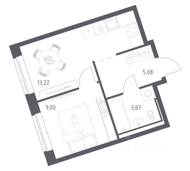 В продаже 1-комнатная квартира в корпусе 6-7 ЖК 'Живи! В Рыбацком'. Квартира располагается на 13 этаже, общая площадь 31.17 м2.