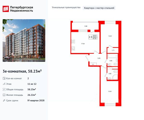 Общая площадь с балконом, составляет 26,98 кв. м.