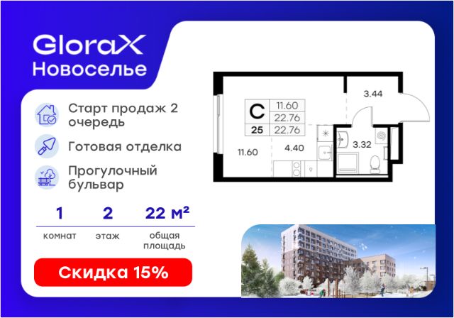 Продажа новой студии от застройщика в ЖК "Загляденье" (микрорайон Новоселье, Ломоносовский район) Квартира площадью 23,23 м² без отделки. Срок сдачи - IV квартал 2027 года. Доступна ипотека, рассрочка и индивидуальные условия оплаты. Преимущества локации: ЖК "Загляденье" расположен в живописном микрорайоне Новоселье на границе с Шунгеровским заказником - прекрасные виды и экология обеспечены. Район отличается удобной транспортной доступностью: • До центра Петербурга по ЗСД - 30 минут • До аэропорта Пулково - 20 минут • Ближайшие станции метро "Ветеранов" и "Автово" • ЖД станция "Сергиево" в 10 минутах езды (28 минут до центра) В шаговой доступности вся необходимая инфраструктура: поликлиника, ледовая арена, фитнес-клубы, школы, детские сады, магазины и кафе. Близость к историческим местам - Петергофу, Пушкину, Павловску. О жилом комплексе: Современные кирпично-монолитные дома с продуманными планировками. Закрытая охраняемая территория, подземный паркинг. Идеальный вариант для комфортного проживания в экологичном районе с развитой инфраструктурой! Звоните для просмотра и консультации.