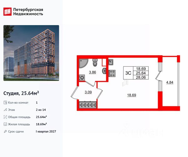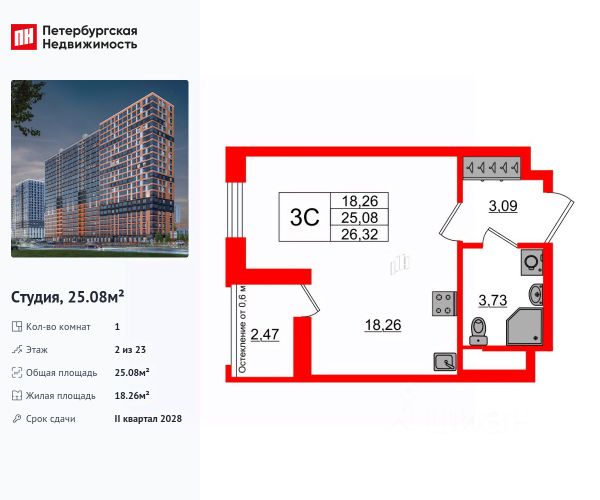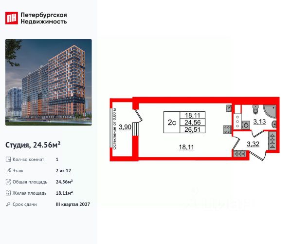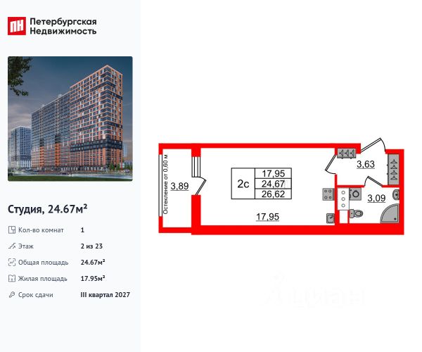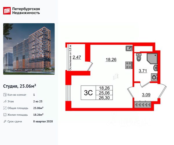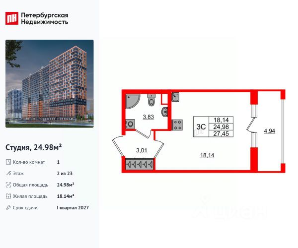 Продается уютная студия от застройщика в жилом комплексе "Город звезд" в новом городе на правом берегу Невы. До метро можно добраться на транспорте всего за 13 минут. Удобная, классическая, функциональная европланировка, просторная прихожая 3.3 м². Общая площадь студии - 24.49 м², жилая 18.06 м², высота потолка 2.77 м. Квартира продается с отделкой "NORD LINE SILVER". Что особенного в ЖК "Город звезд"? • Инновационный Лицей Setl с оригинальной архитектурной концепцией и уникальной образовательной средой • Невский лесопарк под окнами - всегда свежий воздух и полноценный отдых на природе • Четыре тематические площади отдыха с разнообразным благоустройством • Аллея Звёзд - променад протяженностью 5 км с ландшафтным озеленением, зонами отдыха и велодорожкой • Выход на набережную реки Утки, где можно порыбачить или взять напрокат лодку • Единая входная группа с ресепшен и подземный паркинг