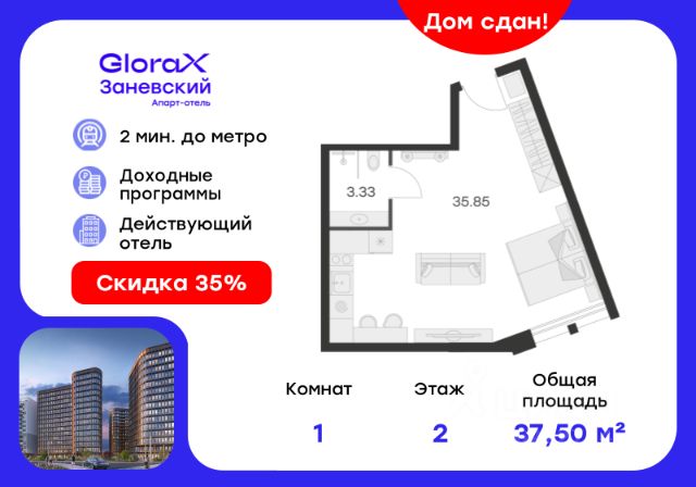 В центре Петербурга на берегу реки Охты представлена студия на 2 этаже общей площадью 19.42 кв.м. Дом бизнес-класса в креативном центре Петербурга на берегу реки Охты и 25 минутах пешком до Невского проспекта и 17 минутах пешком до м. Новочеркасская. Неповторимая и цельная атмосфера места. Река, которая обнимает дома, дышащие фасады из натуральных материалов, парк с родниками и травами во дворе и уникальная пластичная архитектура созвучны характеру современного города. ALPEN — дом твоего равновесия. - Приватные корпуса; - Выразительные фасадные решения; - Декоративная подсветка фасада; - Панорамные террасы с видом на реку Охта; - Квартиры с верандами формата high flat; - Витринное остекление. Внутренний двор, набережная и прилегающие территории образуют цельную эко среду, идеальную для комфортной, насыщенной новыми впечатлениями и эмоциями, динамичной жизни. Авторский двор-парк, переходящий в набережную — живописное природное окружение с тропами, променадом и увлекательными маршрутами для путешествий. Холлы и общественные пространства — продолжение парка. Авторское прочтение общественного пространства от московского дизайн бюро STUDIO 211 с первых минут позволяет ощутить ценность равновесия. ALPEN — для тех, кто ценит близость центра, уединенность и природную энергетику. - Семейная ипотека 3,5% на весь период кредитования. - Без удорожания стоимости квартиры. - Сбербанк, первый взнос от 50,1%. - Рассрочка на 2/6/12 месяцев без удорожания стоимости. - Ипотека 2 рубля в месяц на 2 года.