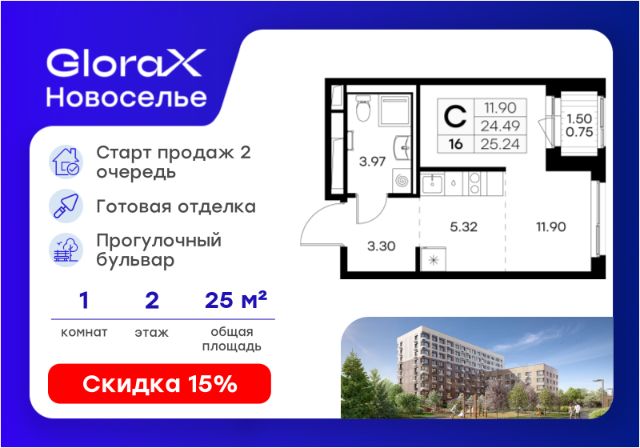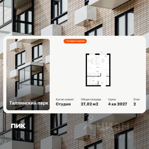 Продается 1-комн. квартира-студия с предчистовой отделкой в ЖК "Брусника в Новоселье" на 2 этаже. Общая площадь: 27.95 кв.м., площадь гостиной 18.5 кв.м., из которых 5 кв.м. выделено под кухонную зону. Все окна выходят на одну сторону. В квартире один совмещенный санузел. Высота потолков 2.7 м.