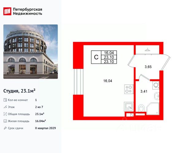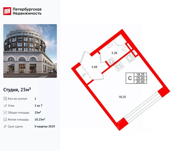 Продается 1-комн. квартира-студия от застройщика с предчистовой отделкой в ЖК "LEGENDA Васильевского" на 2 этаже. Общая площадь: 28.05 кв.м., площадь гостиной 20.21 кв.м., из которых 5 кв.м. выделено под кухонную зону. Все окна выходят на одну сторону. В квартире один совмещенный санузел. Высота потолков 2.72 м. "LEGENDA Васильевского" жилой квартал в минутной доступности от Финского залива, главного креативного хаба Санкт-Петербурга Севкабель Порта и других точек притяжения. Современные инженерные и технические решения, повышающие качество жизни TechnoBox включают в себя: стационарный и удаленный контроль дома, систему вентиляции Air Design - здоровое дыхание без лишнего шума, мультисервисную сеть, объединяющую коммуникационные системы, удаленное управление электроприборами, контроль отопления в каждом помещении, поддерживающий оптимальный температурный баланс во время "холодного" периода", датчики протечки, датчик открытия входной двери. Мультисервисная сеть (МСС) объединяет ключевые слаботочные системы дома, задавая им единый высокий стандарт работы, обеспечивая надёжность их функционирования и управления. Квартира готова к декорированию. Застройщиком сделана шумоизоляция; стены подготовлены для отделки; проведена электрика с учетом рекомендаций по расстановке мебели и бытовой техники; выровнен пол. В каждой квартире установлена взломостойкая входная дверь, окна со специальным термоизолированным алюминиевым профилем. Двор жилого комплекса "LEGENDA Васильевского" закрыт. Проект состоит из шести разноформатных корпусов с ритмичными фасадами в духе пост-конструктивизма. Геометрия жилого комплекса состоит из четко простроенных осей, чередующих открытые пространства и объемы корпусов, каждый из которых обладает своим визуальным кодом индивидуальным рисунком фасада и цветовой палитрой. Корпуса образуют периметр с общественными пространствами: площадью с кафе, магазинами и пешеходным променадом с детскими игровыми хабами, местами для спокойного отдыха и workout-зоной. На территории комплекса предусмотрены теплый подземный паркинг и два наземных 4-х этажных паркинга.