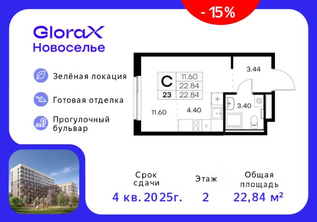 Продажа новой студии с отделкой от застройщика в ЖК "Загляденье" (микрорайон Новоселье, Ломоносовский район) Квартира площадью 23,23 м². Срок сдачи - IV квартал 2027 года. Доступна ипотека, рассрочка и индивидуальные условия оплаты. Преимущества локации: ЖК "Загляденье" расположен в живописном микрорайоне Новоселье на границе с Шунгеровским заказником - прекрасные виды и экология обеспечены. Район отличается удобной транспортной доступностью: до центра Петербурга по ЗСД - 30 минут До аэропорта Пулково - 20 минут Ближайшие станции метро "Ветеранов" и "Автово" ЖД станция "Сергиево" в 10 минутах езды (28 минут до центра) В шаговой доступности вся необходимая инфраструктура: поликлиника, ледовая арена, фитнес-клубы, школы, детские сады, магазины и кафе. Близость к историческим местам - Петергофу, Пушкину, Павловску. О жилом комплексе: Современные кирпично-монолитные дома с продуманными планировками. Закрытая охраняемая территория, подземный паркинг. Идеальный вариант для комфортного проживания в экологичном районе с развитой инфраструктурой! Звоните для просмотра и консультации. *Интерьеры представлены в качестве примера оформления пространства и в стоимость не входят.