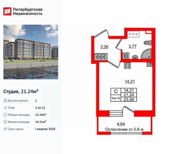 Цена действует при 100% оплате и на определенные ипотечные программы. Подробности — в отделе продаж по телефону. Продаётся студия в ЖК "Цивилизация на Неве" на 2 этаже. Общая площадь составляет 19.71 кв. м. Квартира с white box отделкой. Жилой комплекс "Цивилизация на Неве" располагается по адресу Санкт-Петербург, Невский. "Цивилизация на Неве" - видовые дома бизнес-класса, расположенные вдоль набережной Невы, всего в 7 км от исторического центра. Жилой комплекс идеально выражает особый дух, свойственный знаменитым просторным кварталам постройки сталинской эпохи в Москве и на Московском проспекте в Петербурге. Расположение: • 15 мин на авто до Невского проспекта; • 15 мин на авто до Московского вокзала; • 5 мин на авто до станции метро "Улица Дыбенко"; • 14 мин (7 км) до КАД. Уникальный дизайн входных зон, закрытая территория, видеонаблюдение и охрана, подземный паркинг с лифтом и другие особенности проекта отвечают заявленному классу. В каждом дворе предусмотрено озеленение по индивидуальному ландшафтному проекту с благородными растениями и кустарниками. Преимущества: • Закрытая территория с видеонаблюдением; • Подземный паркинг с лифтом; • Детская площадка на приватной безопасной территории; • Несколько детских садов и школ; • Инфраструктура шаговой доступности на первых этажах корпусов. Успейте приобрести квартиру на выгодных условиях! Чтобы узнать подробности, обращайтесь за консультацией по телефону.