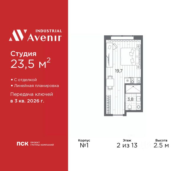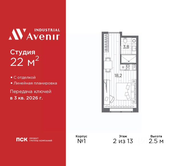 Продаются 1-комн. апартаменты-студия от застройщика с отделкой в ЖК "Industrial AVENIR" на 2 этаже. Общая площадь: 24.5 кв.м., площадь гостиной 20.7 кв.м., из которых 5 кв.м. выделено под кухонную зону. Все окна выходят на одну сторону. В апартаментах один совмещенный санузел. Высота потолков 2.5 м. Апартаменты находятся в корпусе 1. Дом монолитный, одноподъездный, высотой 13 этажей. На этаже 64 квартиры. В подъезде 3 пассажирских и 3 грузовых лифта. Окончание строительства - 3 квартал 2026 года. Оформление сделки по договору долевого участия. В шаговой доступности от дома расположены станции метро (расстояние по прямой): "Кировский завод" (300 м), "Автово" (1.6 км), также недалеко от этого корпуса расположены станции метро: "Нарвская", "Ленинский Проспект", "Балтийская". 13ти этажное здание апарт-отеля строится по монолитной технологии. В номерном фонде 739 апартаментов, в том числе юниты с террасами и в формате "евро 2", офисные и коммерческие помещения, оборудованный коворкинг, подземный паркинг. На первом этаже лобби 160 кв.м. с рецепшн, выставочным пространством, кафе и гостевой зоной. Окончание строительства апарт - отеля - III квартал 2026 года. Оформление сделки по договору долевого участия. Семейная ипотека на апартаменты не распространяется. ОТДЕЛКА Все апартаменты сдаются с полной чистовой отделкой, выполненной в концептуальном индустриальном стиле. Стены оформлены обоями под покраску в сером оттенке. Одна из стен акцентная - с декоративной штукатуркой, имитирующей бетон. Элементы черного металла представлены в трековых светильниках, дверной фурнитуре и сантехнике. На полу уложен износоустойчивый ламинат с деревянной фактурой. Еще одним элементом индустриального стиля в отделке апартамента является крупноформатный керамогранит на полу и стенах санузла, имитирующий фактуру и цвет кортеновской стали. ЗD по шоу руму. РАСПОЛОЖЕНИЕ Апарт-отель Industrial Avenir строится в 300-х метрах от метро "Кировский завод" и "Путиловская" (открытие 2025 г) на центральной магистрали Кировского района проспекте Стачек. Близость развязок с ЗСД и КАД фактически снимает любые ограничения в осмотре пригородов и выбора направлений в личном туристическом плане на день. Предпосылкой для открытия пятого апарт-отеля сети Avenir - Industrial Avenir, стал высокий потенциал локации рядом с крупным производственным кластером, центральной магистралью Кировского района и шаговой доступностью от двух станций метро. Новый апарт-отель возводится рядом с первым апарт-отелем сети - Putilov Avenir, открытым в 2022 году. УПРАВЛЕНИЕ ДОХОДНОСТЬЮ Управлением номерным фондом Industrial Avenir займется структура ГК "ПСК" PSK Invest, входящая в пятерку крупнейших управляющих компаний апарт-отелями в Санкт-Петербурге. Купить апартаменты в Industrial Avenir возможно сразу с управлением, заключив договор с УК PSK Invest и, тем самым, приобрести готовый арендный бизнес. Апартаменты недвижимое имущество, которое является вашей собственностью, и вы капитализиру