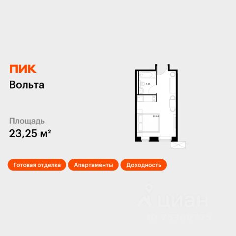 Цена действует при 100% оплате и на определенные ипотечные программы. Подробности — в отделе продаж по телефону. Продаётся студия в ЖК "Большая Охта" на 2 этаже. Общая площадь составляет 23.30 кв. м. Квартира с white box отделкой. Жилой комплекс "Большая Охта" располагается по адресу Санкт-Петербург, Красногвардейский. "ЛСР. Большая Охта" - проект бизнес-класса, в Красногвардейском районе между Якорной и Партизанской улицами, рядом с центром Петербурга. Престижный комплекс с удобной пешеходной и транспортной доступностью. Особенности квартиры высокие потолки и увеличенные окна. Горизонтальная разводка труб водоснабжения и отопления и вынесенные в холлы счетчики сохранят эстетичный дизайн комнат. Встроенные клапаны инфильтрации воздуха будут поддерживать чистоту и свежесть воздуха. Расположение: • 8 мин на авто до станции метро "Новочеркасская"; • 10 мин на авто до станции метро "Ладожская"; • 10 мин на авто до Таврического сада и исторического центра города; • 13 мин на авто до станции метро "Чернышевская"; • 25 мин на авто до КАД. Пространство внутри комплекса разделено на функциональные зоны: тематические, спортивные, уединенные. Все площадки окружают взрослые хвойные и лиственные деревья, подобранные с учетом роста, эстетики и сезонного цветения. Расширенная инфраструктура комплекса продумана до мелочей. Внутри квартала есть все необходимое для жизни с комфортом и удовольствием - детские сады и школы, магазины, площадки для спорта и отдыха, фитнес-залы, модные кофейни и общественные летние веранды. Преимущества: • Подземный паркинг и кладовые помещения; • Двор без машин; • Система "Умный дом" (в т.ч. управление домофоном со смартфона); • Пост охраны и консьерж; • Индивидуальный тепловой пункт; • Колясочные в каждой парадной; • Зарядка для электромобилей. Успейте приобрести квартиру на выгодных условиях! Чтобы узнать подробности, обращайтесь за консультацией по телефону.