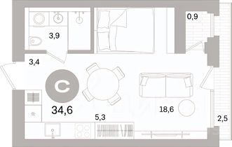 • ✅ Минимальная площадь: 17,4 м²