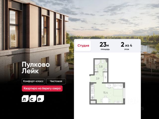Просторная 1-комн. квартира-студия с отделкой в ЖК "PLUS Пулковский" на 2 этаже. Общая площадь: 22.66 кв.м., площадь гостиной 14.55 кв.м., из которых 5 кв.м. выделено под кухонную зону. Все окна выходят на одну сторону. В квартире один совмещенный санузел. Высота потолков 2.89 м.
