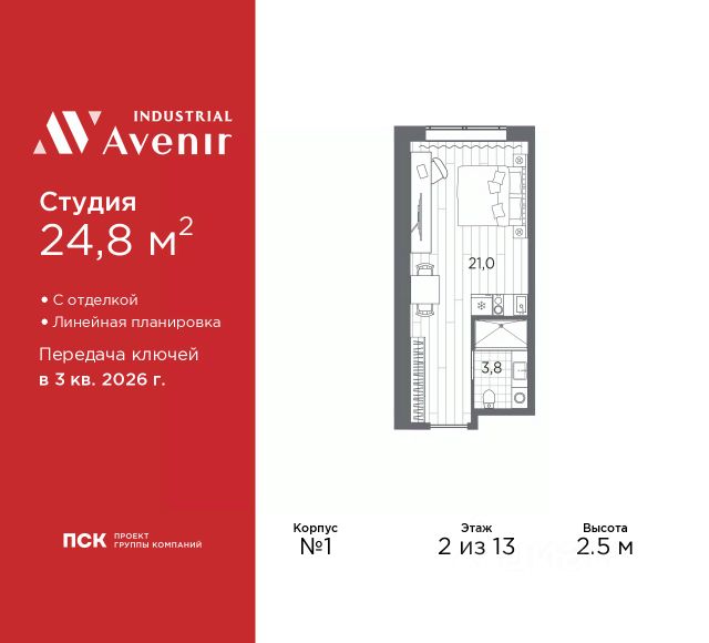 Просторные 1-комн. апартаменты-студия с отделкой в ЖК "Industrial AVENIR" на 2 этаже. Общая площадь: 22 кв.м., площадь гостиной 18.2 кв.м., из которых 5 кв.м. выделено под кухонную зону. Все окна выходят на одну сторону. В апартаментах один совмещенный санузел. Высота потолков 2.5 м. В шаговой доступности от дома расположены станции метро (расстояние по прямой): "Кировский завод" (300 м), "Автово" (1.6 км), также недалеко от этого корпуса расположены станции метро: "Нарвская", "Ленинский Проспект", "Балтийская". 13ти этажное здание апарт-отеля строится по монолитной технологии. В номерном фонде 739 апартаментов, в том числе юниты с террасами и в формате "евро 2", офисные и коммерческие помещения, оборудованный коворкинг, подземный паркинг. На первом этаже лобби 160 кв.м. с рецепшн, выставочным пространством, кафе и гостевой зоной. Окончание строительства апарт - отеля - III квартал 2026 года. Оформление сделки по договору долевого участия. Семейная ипотека на апартаменты не распространяется. ОТДЕЛКА Все апартаменты сдаются с полной чистовой отделкой, выполненной в концептуальном индустриальном стиле. Стены оформлены обоями под покраску в сером оттенке. Одна из стен акцентная - с декоративной штукатуркой, имитирующей бетон. Элементы черного металла представлены в трековых светильниках, дверной фурнитуре и сантехнике. На полу уложен износоустойчивый ламинат с деревянной фактурой. Еще одним элементом индустриального стиля в отделке апартамента является крупноформатный керамогранит на полу и стенах санузла, имитирующий фактуру и цвет кортеновской стали. ЗD по шоу руму. РАСПОЛОЖЕНИЕ Апарт-отель Industrial Avenir строится в 300-х метрах от метро "Кировский завод" и "Путиловская" (открытие 2025 г) на центральной магистрали Кировского района проспекте Стачек. Близость развязок с ЗСД и КАД фактически снимает любые ограничения в осмотре пригородов и выбора направлений в личном туристическом плане на день. Предпосылкой для открытия пятого апарт-отеля сети Avenir - Industrial Avenir, стал высокий потенциал локации рядом с крупным производственным кластером, центральной магистралью Кировского района и шаговой доступностью от двух станций метро. Новый апарт-отель возводится рядом с первым апарт-отелем сети - Putilov Avenir, открытым в 2022 году. УПРАВЛЕНИЕ ДОХОДНОСТЬЮ Управлением номерным фондом Industrial Avenir займется структура ГК "ПСК" PSK Invest, входящая в пятерку крупнейших управляющих компаний апарт-отелями в Санкт-Петербурге. Купить апартаменты в Industrial Avenir возможно сразу с управлением, заключив договор с УК PSK Invest и, тем самым, приобрести готовый арендный бизнес. Апартаменты недвижимое имущество, которое является вашей собственностью, и вы капитализируете свои вложения и получаете выгоды как от увеличения стоимости апартамента к моменту завершения строительства, так и от сдачи апартамента в аренду. #25wa2V