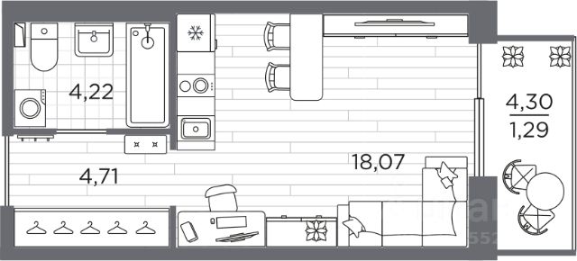 1-комн. квартира-студия с отделкой в ЖК "Сезоны" на 2 этаже. Общая площадь: 28.29 кв.м., площадь гостиной 18.07 кв.м., из которых 5 кв.м. выделено под кухонную зону. Все окна выходят на одну сторону. В квартире один балкон, один совмещенный санузел. Высота потолков 2.76 м. Квартира находится в корпусе 622. Дом монолитный, одноподъездный, высотой 25 этажей. На этаже 10 квартир. В подъезде 2 пассажирских и 1 грузовой лифт. Начало строительства - 4 квартал 2025 года. Окончание строительства - 2 квартал 2028 года. Оформление сделки по договору долевого участия. Видовой жилой комплекс "Сезоны" от ГК ПСК возводится в одном из самых востребованных и престижных районов Санкт-Петербурга - Приморском, рядом с Суздальским и Выборгским шоссе. Такое расположение обеспечивает удобный выезд в разные части города, сочетая городской комфорт с близостью к природе. Всего в 50 метрах находится природный заказник "Новоорловский" и речка Каменка, а в пешей доступности - Суздальские озёра. Приморский район отличается развитой социальной и транспортной инфраструктурой. Здесь расположены крупные торговые и деловые центры, современные спортивные объекты, медицинские учреждения, магазины, кафе и рестораны. Комплекс включает четыре корпуса, ввод которых в эксплуатацию запланирован на 2028 год. Проект и прилегающий микрорайон разработаны в соответствии с концепцией "15-минутного города", при которой вся необходимая инфраструктура находится в шаговой доступности. В ближайшем окружении - две школы, пять детских садов, магазины, кафе, салоны красоты, банковские отделения и пункты выдачи заказов. Также предусмотрены два четырёхъярусных паркинга с лифтами на 288 машиномест. О застройщике ГК ПСК - один из крупнейших девелоперов Санкт-Петербурга с более чем 18-летней историей. Компания реализует проекты во всех сегментах недвижимости - от премиальных жилых комплексов до масштабных кварталов комфорт-класса и апарт-отелей. По данным портала ЕРЗ.РФ, ПСК входит в ТОП-3 крупнейших застройщиков Санкт-Петербурга по объёму текущего строительства. Портфель компании превышает 3 млн кв. м жилой и коммерческой недвижимости. Все объекты сдаются строго в срок и отличаются высоким уровнем архитектурных и инженерных решений. #Z7oIOf