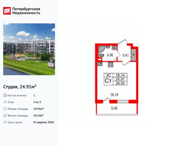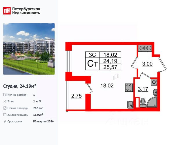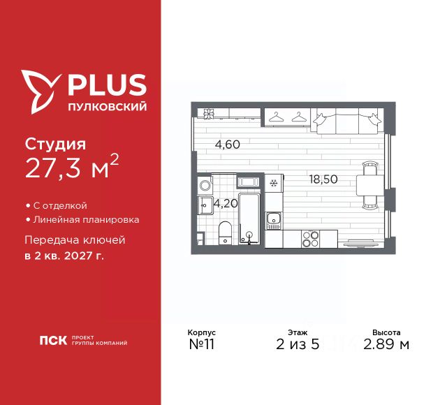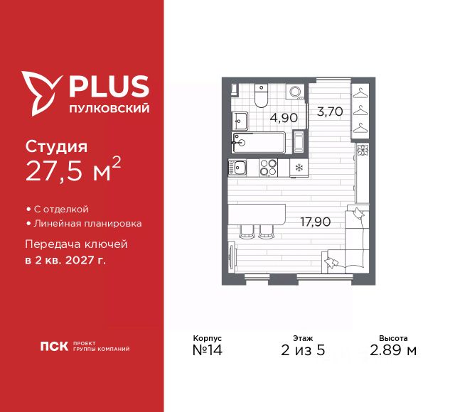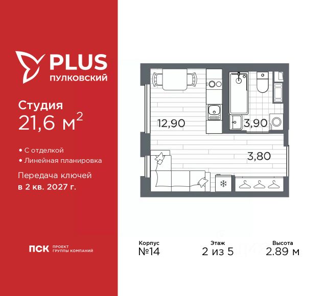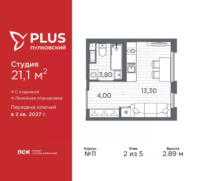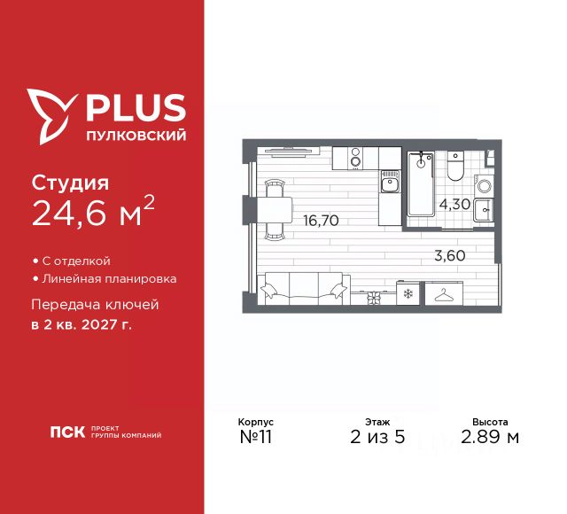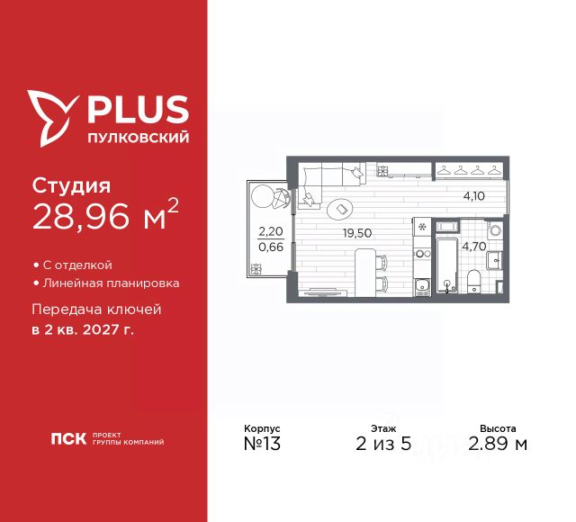 Продается 1-комн. квартира-студия с отделкой в ЖК "PLUS Пулковский" на 2 этаже. Общая площадь: 28.96 кв.м., площадь гостиной 19.5 кв.м., из которых 5 кв.м. выделено под кухонную зону. Все окна выходят на одну сторону. В квартире один балкон, один совмещенный санузел. Высота потолков 2.89 м. Дом монолитный, трехподъездный, высотой 5 этажей. Квартира находится во 2-й секции в корпусе 13. На этаже 7 квартир. В подъезде 1 грузовой лифт. Начало строительства - 1 квартал 2026 года. Окончание строительства - 2 квартал 2027 года. Оформление сделки по договору долевого участия. Уютный пятиэтажный city квартал PLUS Пулковский расположен в престижном Московском районе на пересечении Пулковского и Волхонского шоссе в новом формирующемся микрорайоне. Рядом проходит одна из важнейших транспортных артерий города Пулковское шоссе, а в 10 минутах езды два въезда на КАД и въезд на ЗСД. Благодаря удобному и быстрому выезду на Пулковское шоссе, можно легко добраться до центра города за 35 мин. До станций метро "Московская" и "Купчино" - 15 мин. на машине, а до аэропорта Пулково - 17 мин. В составе квартала: 30 пятиэтажных домов, школа со спортивным стадионом, 2 детских сада с бассейнами, наземные и подземные паркинги, центральный зеленый бульвар с play hub и местами отдыха. Благоустройство квартала продумано до мельчайших деталей, в его основе - забота о качестве жизни каждого жителя. Дома возводятся по современной монолитной технологии строительства с вентилируемыми фасадами. Благодаря большим увеличенным окнам и отсутствию высокоэтажных домов, во всех квартирах максимальный объем естественного света. В составе квартала запланированы социально-значимые объекты: школа на 825 мест со спортивным стадионом и бассейнами, два детских сада с бассейнами на 220 мест каждый. Территория квартала зонирована таким образом, чтобы автомобильные и пешеходные потоки и не пересекались. Прогулочные и велосипедные дорожки отделены от автомобильных проездов зелеными насаждениями. Дворы закрыты для машин, что дает чувство дополнительной безопасности для жителей особенно, для самых маленьких. Вся территория квартала безбарьерная. Здесь нет пандусов, резких перепадов высот или неудобных ступеней. Вход в парадные с уровня земли. В каждом дворе есть своя оборудованная детская площадка. А в центре микрорайона расположится большая игровая площадка play hub с пространством для командных игр. PLUS Пулковский располагается в молодом микрорайоне, который сейчас находится в стадии активного развития. Он будет обладать собственной развитой инфраструктурой. В радиусе 15 минут езды на автомобиле располагаются многочисленные магазины, супермаркеты, спортивные, образовательные и медицинские учреждения, парки и достопримечательности. Для автомашин предусмотрены отдельно стоящий 5-ти этажный паркинг на 958 машино-мест, две подземные парковки на 367 машино-мест и наземные парковочные зоны по внешнему периметру микрорайона. #ZmFUMa